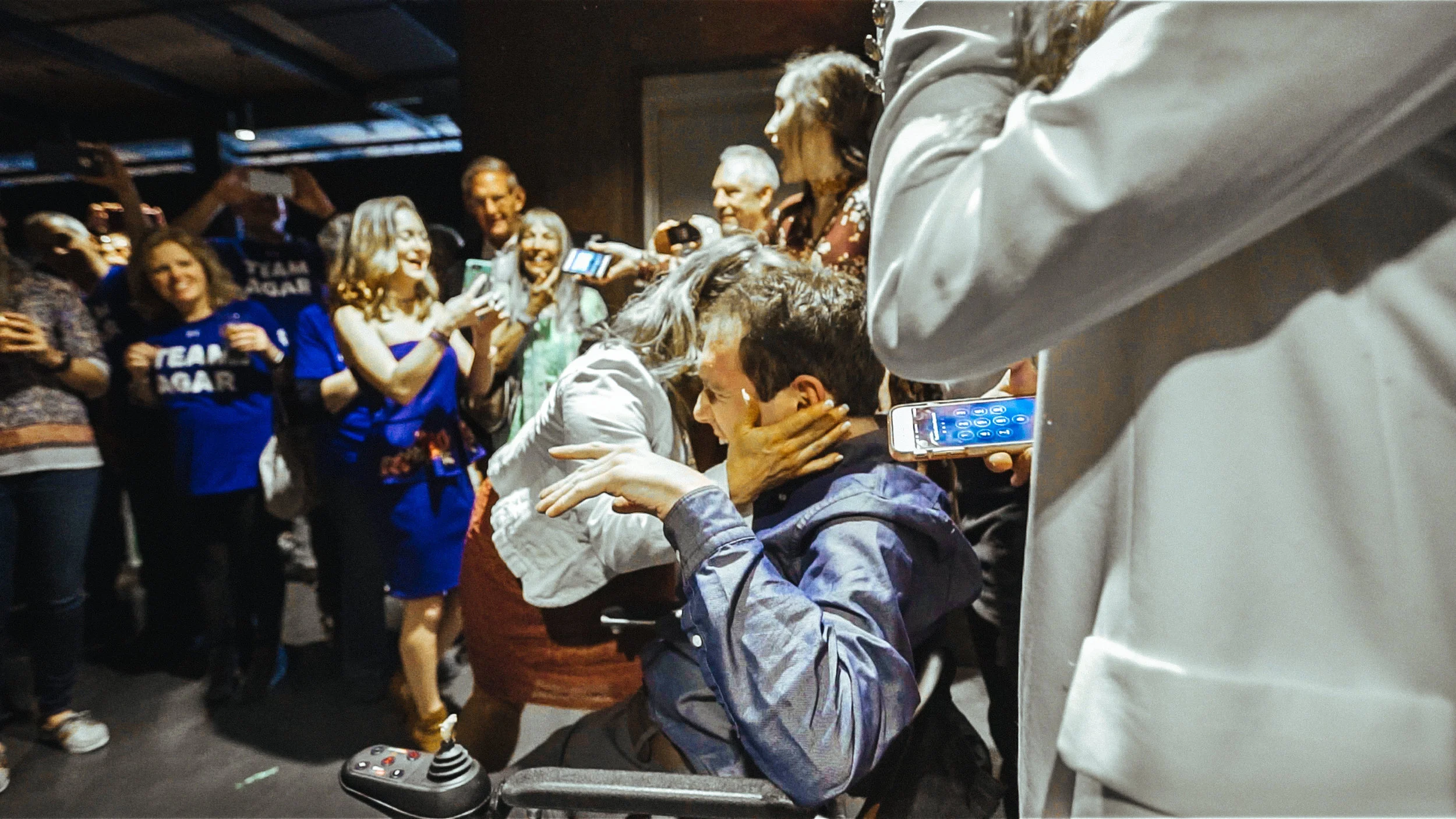 Overview: It started with social listening. I came across a tweet about Johnny Agar - a young athlete with cerebral palsy - and how UA's RULE YOURSELF film inspired him and his dad in their racing journey. With the help of his dad, Jeff, Team Agar trains together for ironman triathlons, where Jeff pushes and pulls Johnny along through water, on a bike, and on foot. Johnny's goal is to walk the last mile of a race on his own, with only the help of his walker. According to his mom, he would watch Phelps' RULE YOURSELF film on repeat, so she decided to make a version of the film, starring Johnny.